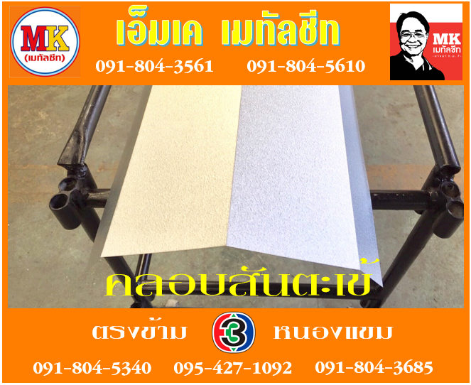เอ็มเค เมทัลชีท ผู้ผลิตและจำหน่าย แผ่นหลังคาเหล็กเมทัลชีท เจ้าของสโลแกน “แผ่นเดียวเราก็ขาย” (A single sheet, we also sell) ผลิตและจำหน่ายแผ่นหลังคาเมทัลชีท แผ่นหลังคาเมทัลชีท ติดฉนวน แผ่นหลังคาโปร่งแสง สีขาวขุ่น แผ่นหลังคาโปร่งใส สีใสกระจก ลูกหมุนระบายอากาศ แผ่นคลอบข้าง แฟรชชิ่งทุกชนิด เหล็กกล่องสี่เหลี่ยม เหล็กฉาก เหล็กตัวซี เหล็กชุบซิ้งค์ไม่เป็นสนิม สกรูยิงแผ่นหลังคา หัวหกเหลี่ยม ซิลลิโคนกันซึม