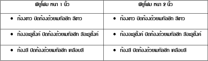 หลังคา พียูโฟม สีอลูซิงค์ มีให้เลือก ความหนาได้ 2 ขนาด